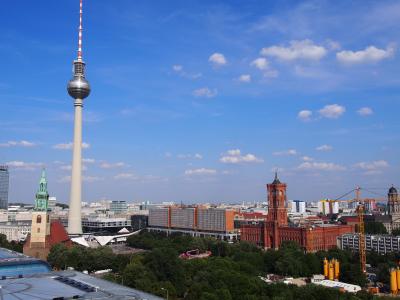 空港からはバスと地下鉄を乗っていきます。ただ、地下鉄はU6からだと少し歩きます。U2は目の前です。タクシーはいつも止まっているので早朝空港に行くときも便利です。また、観光もベルリン大聖堂、ブランデンブルク門、など徒歩圏内だと思います。(それなりに歩きますが)観光に大変よい立地です。
