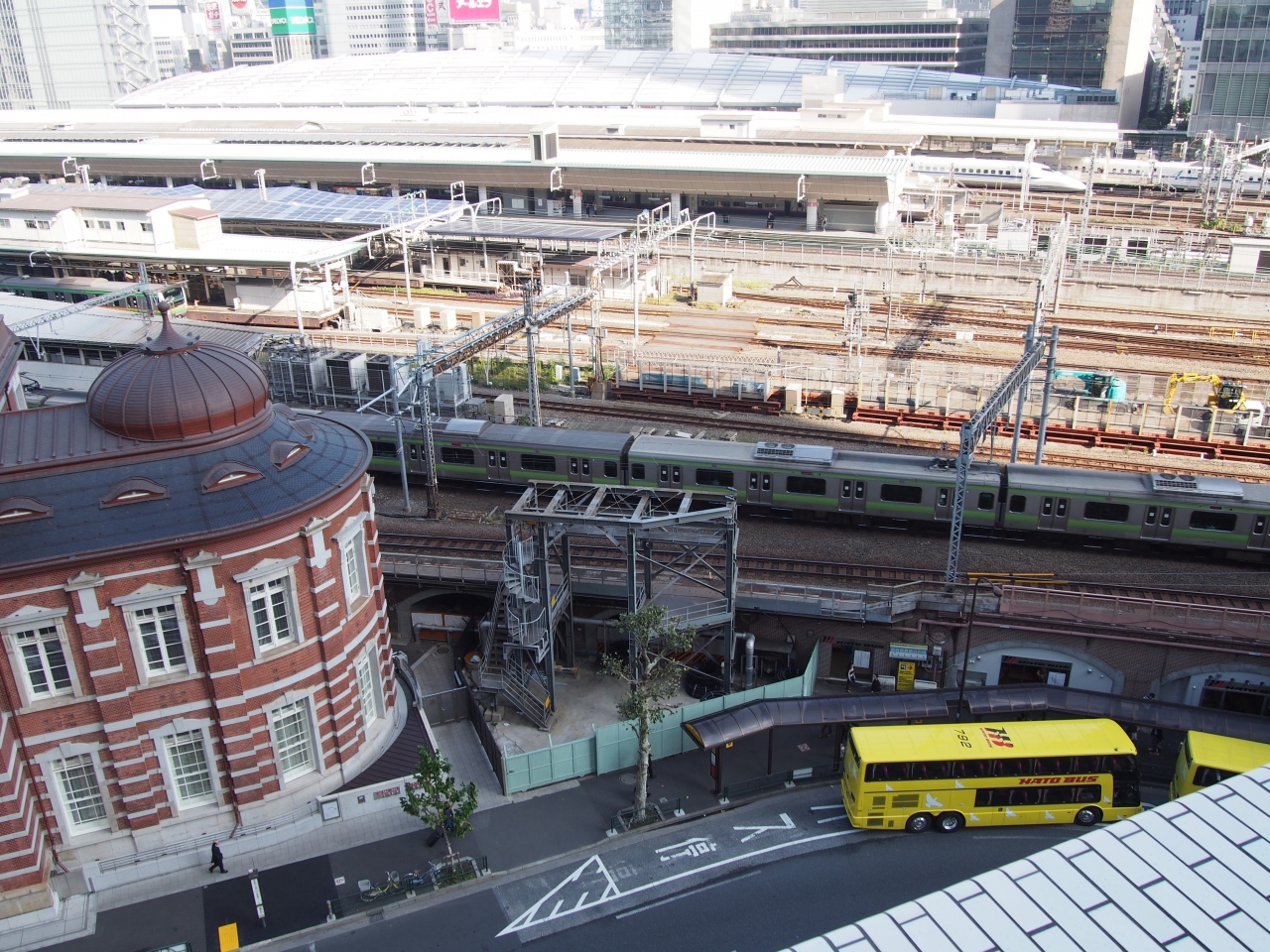 1階には郵便局があり記念切手も購入できます。ここで一番のおすすめは屋上庭園です。ここからは、東京駅を行き交う電車(新幹線、山手線、黄色いハトバスなど)やレンガ造りの東京駅をジオラマのように見学できます。芝生もあり都会のオアシスです。もちろん無料なのも嬉しいですね。