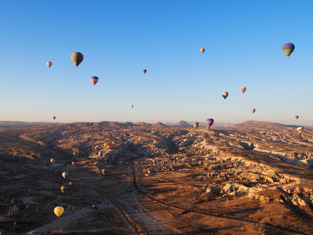 籠に20人が入って気球が上がっていきました。そこからの景色は最高でカッパドキアが一望できてガイドさんの案内があります。朝日が昇っていく様子や、カッパドキアが一望できるようすは最高でした。- 旅行時期