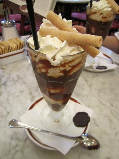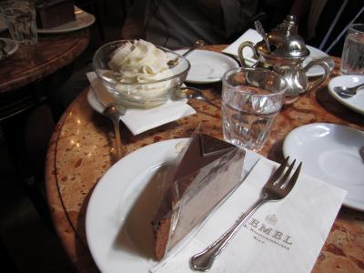 疲れたので一休みと思いザッハに入りました。少し気位が高いのかな?と心配してましたが、笑顔の素敵なウェイターさんでした。アイスコーヒーを注文したのですが、ザッハのチョコもついてきました。この日はデーメルでザッハトルテを食べ、ウィンナーコーヒを飲み、ザッハでアイスコーヒを飲みました。一生分の生クリームを食べたみたいです。でも、とってもおいしかったよ!お土産のザッハトルテはとても喜ばれました。空港でも売ってますが値段が倍違った記憶があります。翌日出発ならここで購入した方がいいと思います。(カフェと店舗が違った記憶です。あいまいなので調べて行ってくださいね)