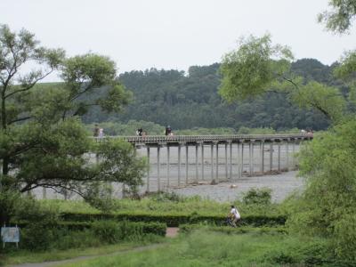 あまり期待せず、旅行の帰りに行きました。近くにスーパなどがあり、カーナビの「もうすぐです。」の案内に疑問を持ってました。突然、堤防に突き当たり、本当にここ?と思ったら素晴らしい橋が見えました。時代劇に使われそうな橋です。駐車場もあり、トイレもあるのでいいですよ~ん。