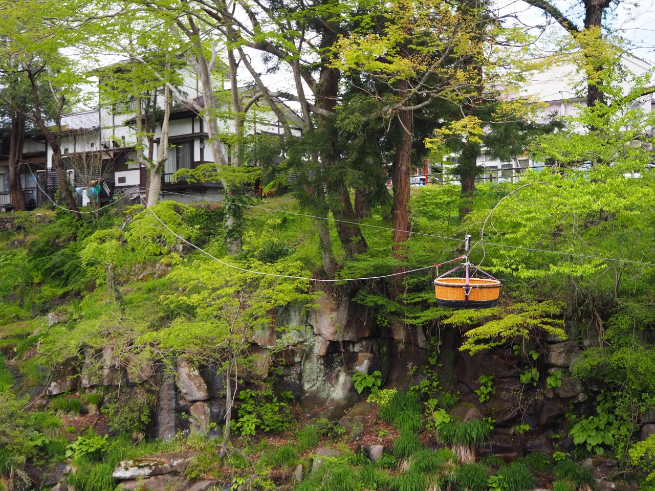 空飛ぶだんごとして有名です。厳美渓に行ったときに利用しました。対岸の団子屋さんからロープを滑りながら団子が運ばれます。