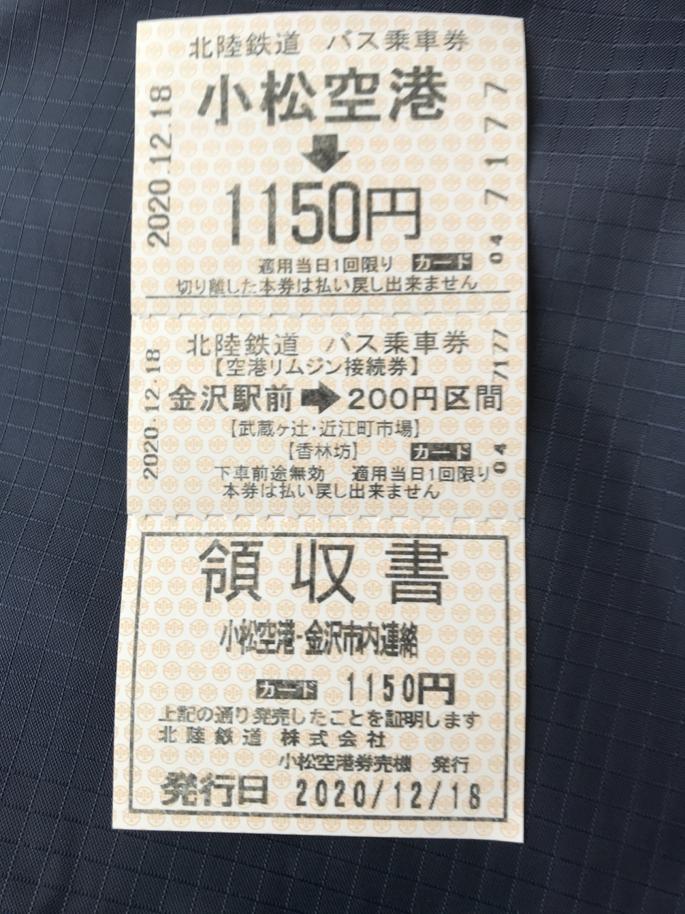 空港から金沢駅までのバスには市内のバス券があるので移動される方は確認するとよよいでしょう。