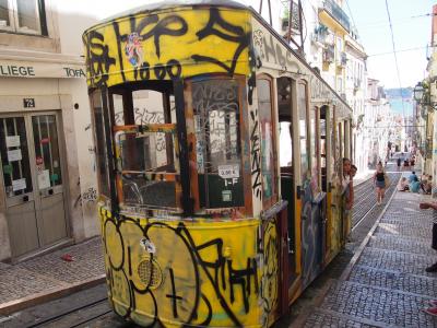 リスボアカードなどで無料で乗れますが通常の運賃は高い!距離はそれほどなく歩いてもOKの状態です。どちらかと言えば観光用なので待機時間が長くその間に皆さん写真を撮っていました。落書きだらけの車体に、落書きだらけの壁を走る姿も悪くないのか?と思いました。