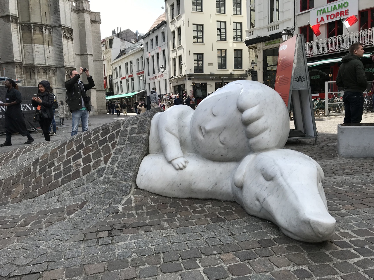 ネロがみたかったルーベンスの絵のある大聖堂の前にあります。日本人からすると???とネッシーのようなパロラッシュですが無いよりマシかもしれないです。この近くにレースの店があり、そこにネロとパトラッシュのレースがありました。こちらの方が日本人うけします(^^)