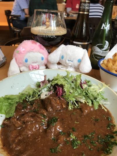 ビールを造る過程の見学も出来ますが、私は夕飯とビールを飲みに行きました。席に座るとオーダーを取りに来てくれます。メニューがわからないので、あらかじめネットで見た写真を見せて、ビールも同様に、ピクチャー注文しました。ビール煮込みを食べましたがふんだんに使ってあるみたいで、ちょっと苦かった。もう一杯呑みたかったな~~