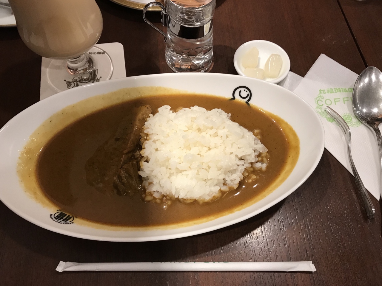 友人とコーヒータイムに入りました。みんなはケーキセットやパウンドケーキなどを食べてましたが、私はカレーをチョイス!見た目はレトロでさっぱり風ですが、味は意外にピリッとしてました。茶店のお上品なカレーです。甘いのが苦手な人はカレーなど軽食もあります。
