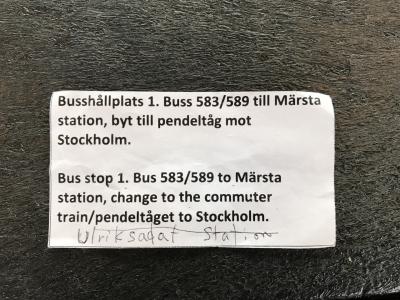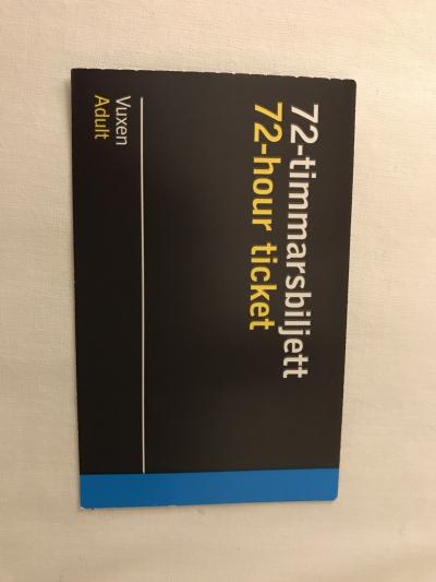 フィンエアーで到着、インフォメーションで72時間有効の乗り放題チケットの購入の意志をつたえたら、添付写真の行き方を案内されました。(ストックホルム市内の途中の駅のホテル)