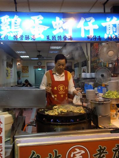 地元の人がたくさん集まっているオイスターオムレツのお店を発見。屋台で一...