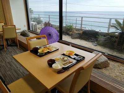 阪急交通社のJRパッケージプランで行きました。東京からの特急「踊り子」号往復付き、しかも2泊で一人2万円。食事は朝夕ともバイキングで夕食はなんと飲み放題付き。飲み物はビールは勿論ワイン、日本酒、焼酎多数。日本酒や焼酎は地酒でたくさんの種類があり、全部飲みきれませんでした。