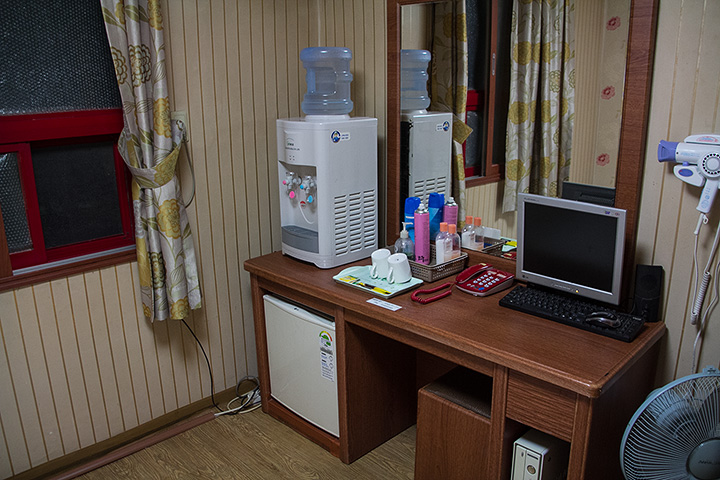 案内してくれたスタッフが間違ってドアを外から閉めたのかな、と思いフロントに電話しようとしても、部屋には電話もインターホンもない。