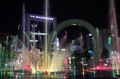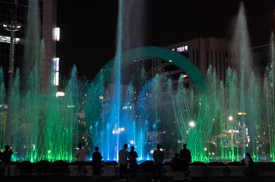 たまたま偶然駅前広場を通りかかったら、突然音楽と共に光の噴水が踊りだした。結構長く20分くらい続いていた。