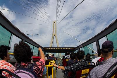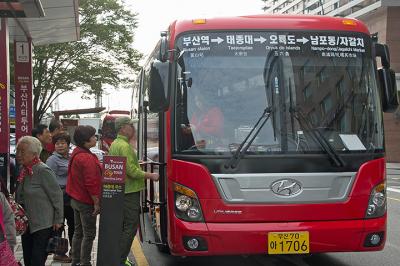 バス乗り場で待っていると赤いバスが到着。てっきりこれがレッドラインのバスかと思ってチケット15,000ウォンを購入。パスに乗り込み待っていると、なんか様子が違います。スタッフに聞くとこれは太宗台方面に行くシティツアー"ジャンボ"バスとのこと。