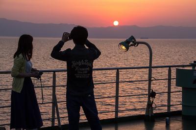 - 海しか見えないかと思っていたが世界遺産候補の沖ノ島が見えたことに感激。対馬を過ぎたら韓国がすぐに見えるので飽きない。