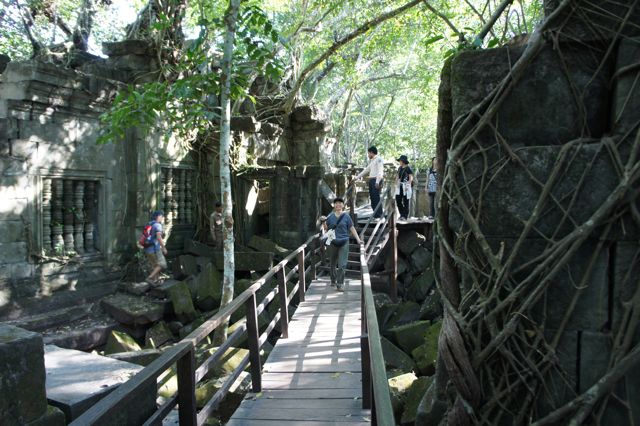 遺跡全体が自然の猛威で破壊されている状態にありながら、その自然と共存して観光ができるように、木の廊下屋階段が整備されていて、とても観光し易くなっています。