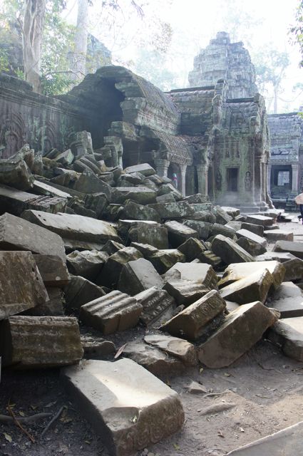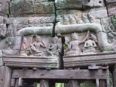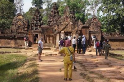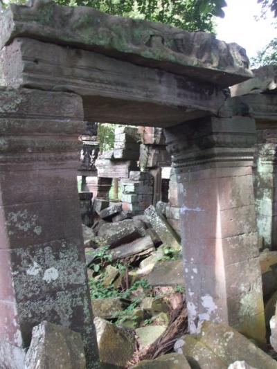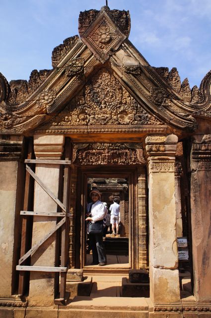 その修復のおかげなのか、入り口で外国人1人5ドル取られるようになって、カンボジア人は勿論無料。以前は遺跡のすぐ横まであった地雷は綺麗に撤去され、庭の部分や廊下のような部分などが修復され、ちゃんとビジター用の通路も少しできていました。それでもまだ全体の5%も終わっていない感じでした。