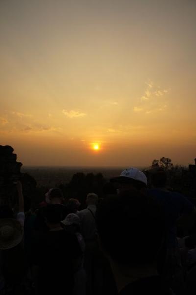 プノンバケンの上はそんなに広くない上に、西側がみんな集まるので、ますます居場所がなく、足を踏んだり踏まれたり、はたまた起こる人して喧嘩ごしになっていたりと、なかなかゆっくり夕陽を見る感じではありませんでした。