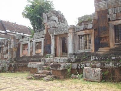 シソポンから車で泥道を北に1時間半くらいの場所にある、12世紀にできたと言う仏教遺跡です。