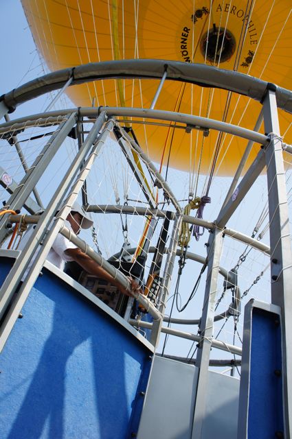 気球は思ったよりも大きくて、直径7m(?)ほどの渡り廊下のような感じのものが輪になってバルーンの下にぶら下がっていて、そこを行ったり来たりできます。