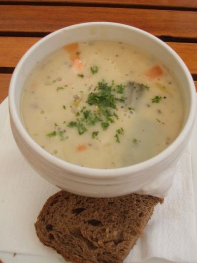 有名なメニューは、クラムチャウダー。具沢山でパンと一緒に食べると、かなりお腹いっぱいになります。