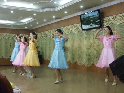 食事は韓国料理とほとんど同じですが、何と言っても悦び組の女性がウェイトレスとしていて、尚かつお昼と夜の2回パフォーマンスをしてくれるのが見物です。