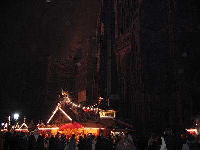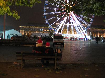 STRASBOURGの駅。駅前に移動観覧車が、立ってました。サンタの帽...