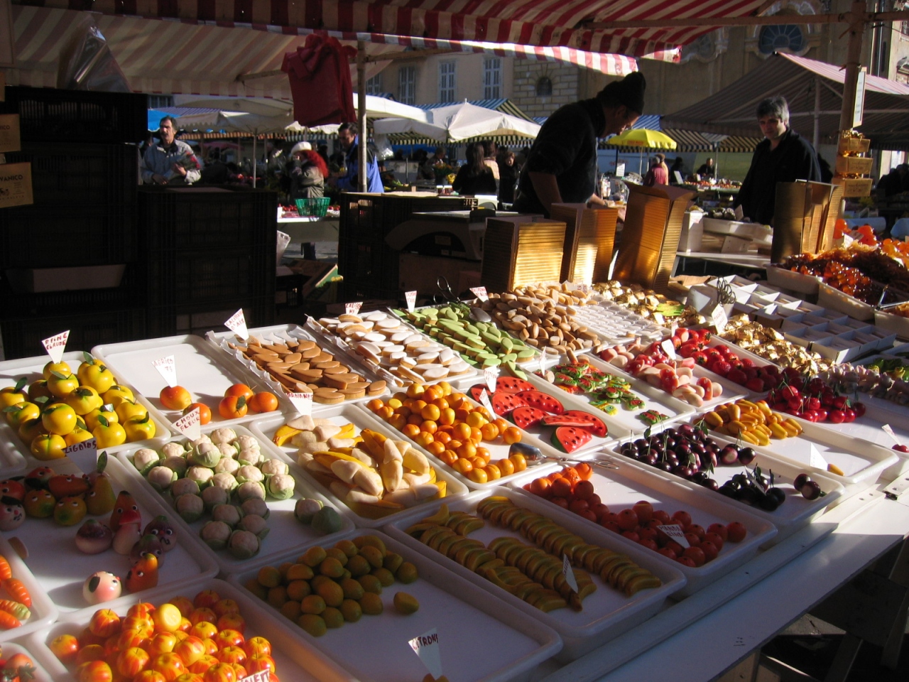 お菓子、パン、お花、野菜、オリーブなどを売ってました。