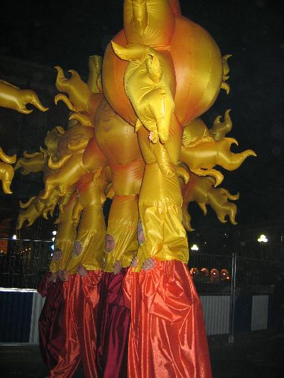 始めて見たこんなカーニバル。よーく、風船の中を見る本物のカップルが抱き...