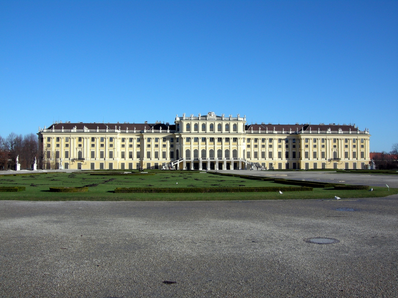 良く晴れていたので、宮殿のクリームイエローの外壁と青空のコントラストが美しい。