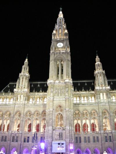 団体ツアーでウィーンに来て、この前でバスから降ろしてもらって夜景を見た。