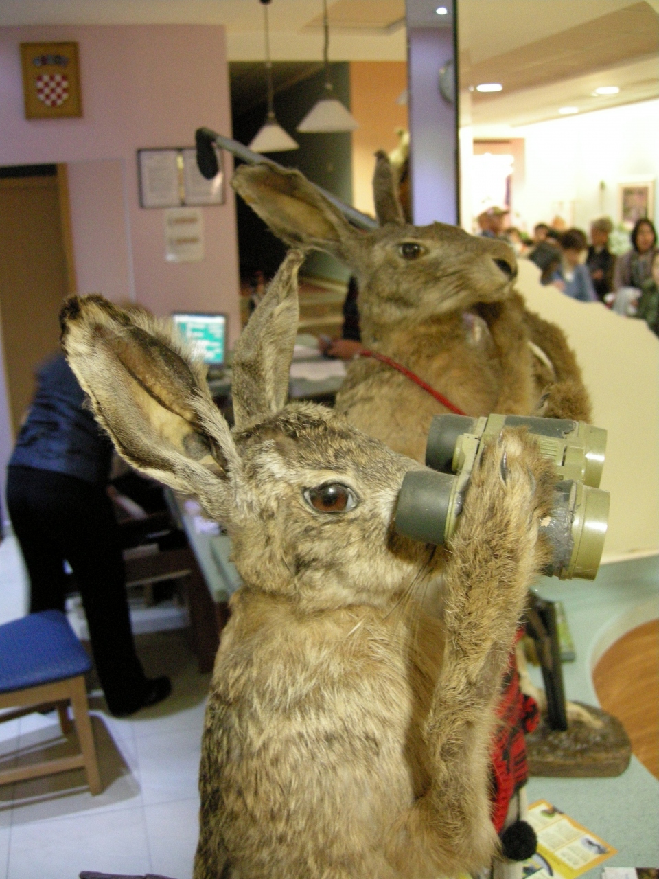 ロビーに面白いポーズをした動物の剥製が、たくさん飾ってあるホテル