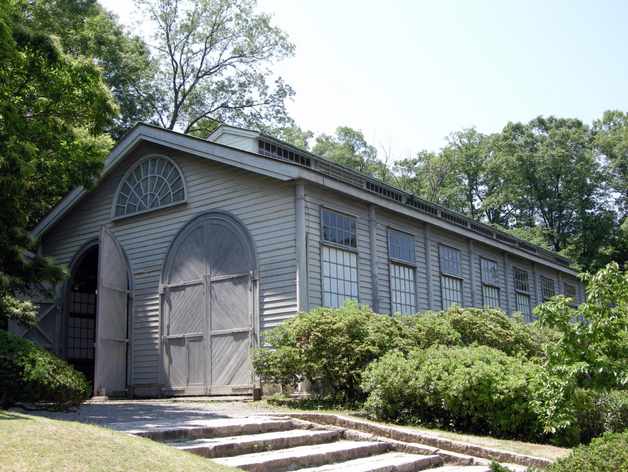 自然の起伏を活かした上手い移築で、湖畔の風光明媚な丘の風景にもマッチしている。