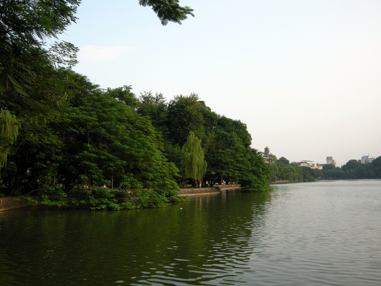 水草や岸辺の緑が美しく、アヒルの群れがゆったり泳いでいたりベトナムの田舎らしい、のんびりした雰囲気。