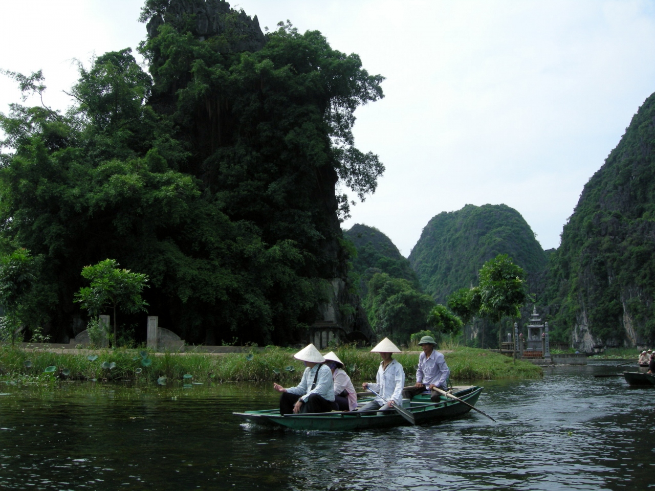 ほとんど流れが無いように見える穏やかな川を、小舟に乗って遊覧して景色を楽しむ、というものでハロン湾と似ている。