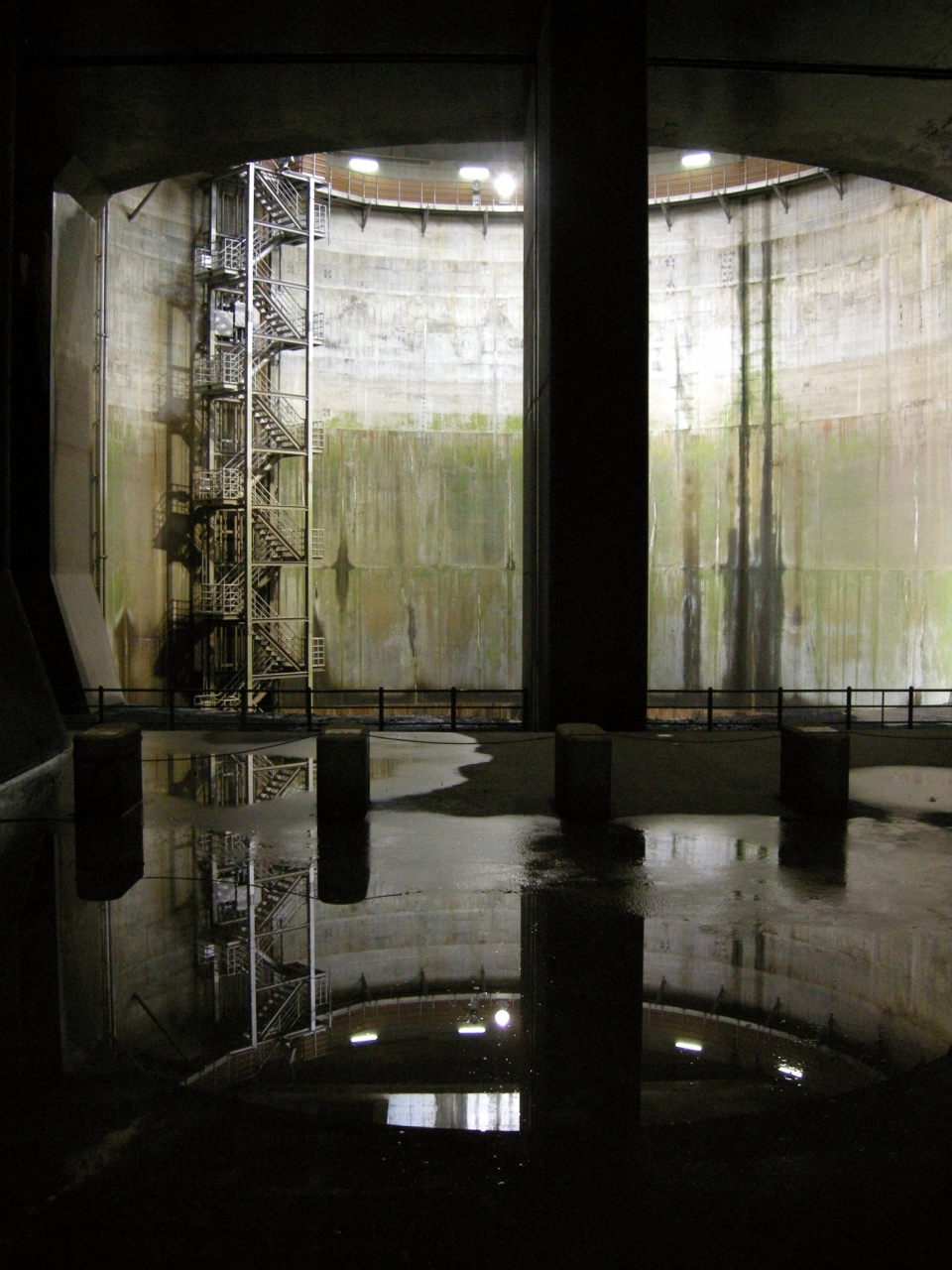 他の見学者と一緒に(40人くらい来ていた)長い階段を下り、ヒンヤリした調圧水槽の内部に入る。