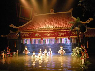 水上人形劇って、湖でやると思っていたんだけど(ハノイには湖がたくさんあるので岸辺にイスを並べて、そこで見るのを想像していた)ちゃんと専用の劇場があって、その中で見るんだった。