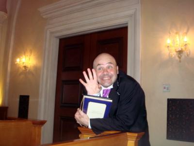 人前式だったんだけど、司会の外国人のおじさんがコメディアンみたいな身振り手振りで、大げさな台詞の誓いの言葉を言ったり。