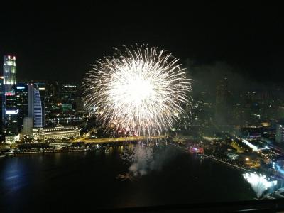 シンガポールの独立記念日前の週末で、花火のリハーサルをインフィニティプールから見ることができました。それは良かったのですが、混んでました。。。夕方はプールサイドのチェアはひとつも空いてないし。