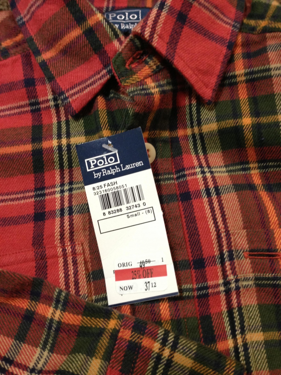 そして、私はいつも2階の子供服売り場へ行って、ラルフローレンを買い込みます。店頭に並んでから時間のたったものなどはどんどん割引されていくようで、例えば40%ディスカウントという札のハンガーにかかってるものは、すでに30%引きのタグがついていたりして、つまり、30%引きのさらに40%引きになってたりします。
