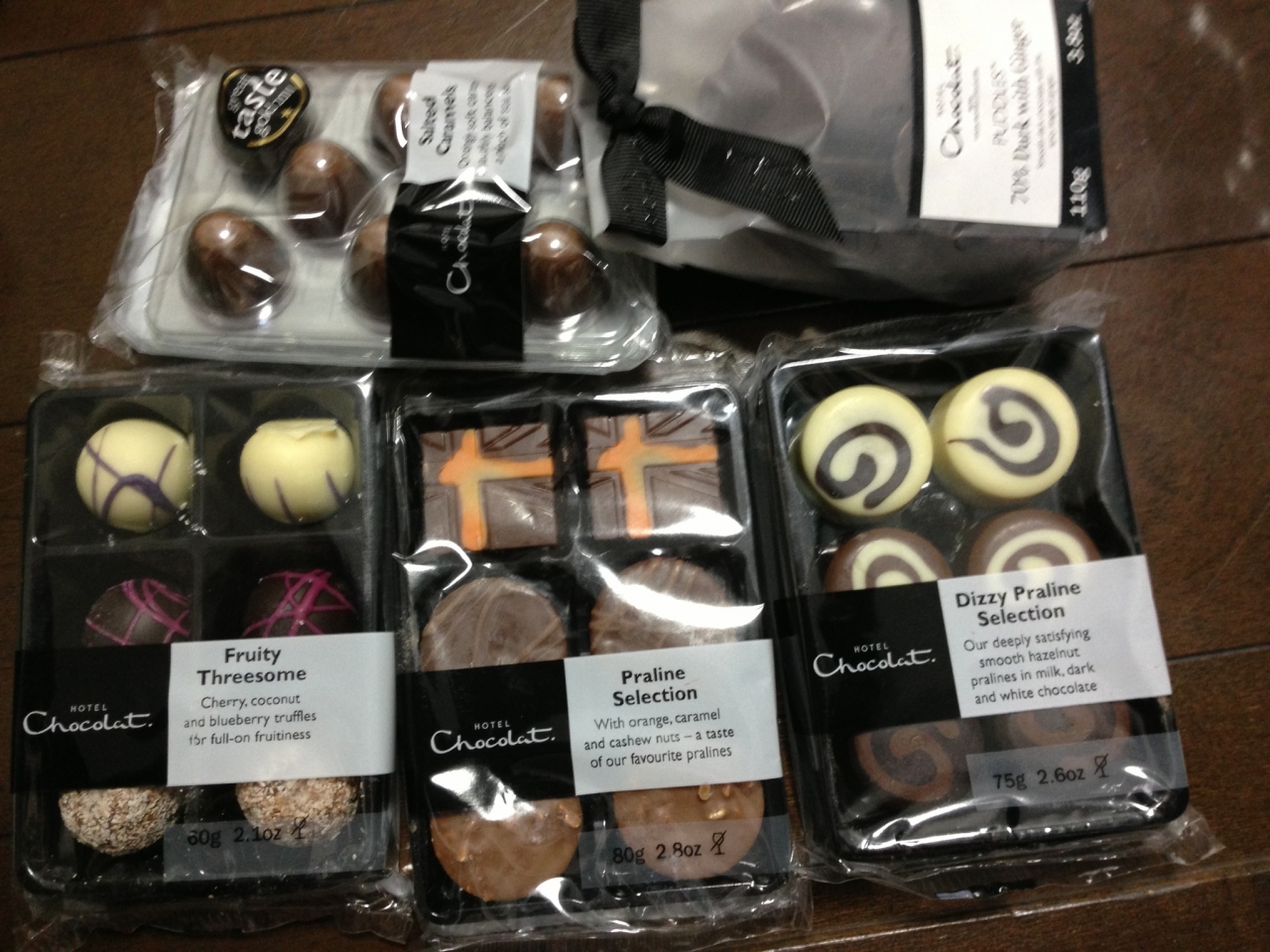 最初は高級なチョコレート屋さんかと思ったのですが、リーズナブルなお値段で、たくさん種類があって楽しくなります。写真サイズの、6粒タイプのものや、同じサイズで板状になっていてホワイトチョコやナッツ、ウエハスなどでデコレーションされたタイプのものがあり、3つ買うと1つ3ポンド弱です。また、クリスマスの時期だけに、オーナメントパッケージのものなどもありました。ゴディバはリンツもいいですが、日本では見かけないチョコもいいかも。もちろん、ステキな箱入りの詰め合わせもあります。