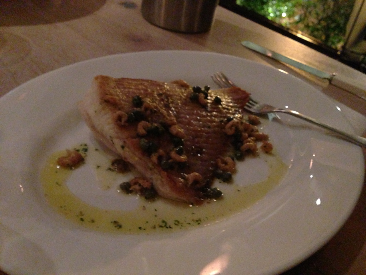 アペタイザーで頼んだサラダやオリーブ、カラマリなどとってもおいしかったです。メインの魚は、どの魚の切り身もポーションが大きかったです。私はムール貝を頼みました。とってもおいしかったです。おいしかったのですが、大きなガラスポットに満杯のムール貝が出てきて、ひたすらそれを食べ続けるのはどうかと・・・4人くらいでシェアしてもたっぷり食べられるくらいの量でした。(もちろん、周りとシェアしましたが。)