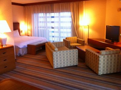 出張で泊まりました。なぜかコーナースイートにアップグレードされて、ラッキーでしたが、ホテル自体古いので、確かに広かったですが、浴室など古かったです。マリーナ側の部屋でしたので、夜景はとってもきれいでした。