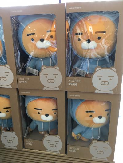 文房具から洋服まで幅広い品数ですが、中でも「ライアン」という熊のキャラのぬいぐるみが人気で箱を持っている人をたくさん見かけました。