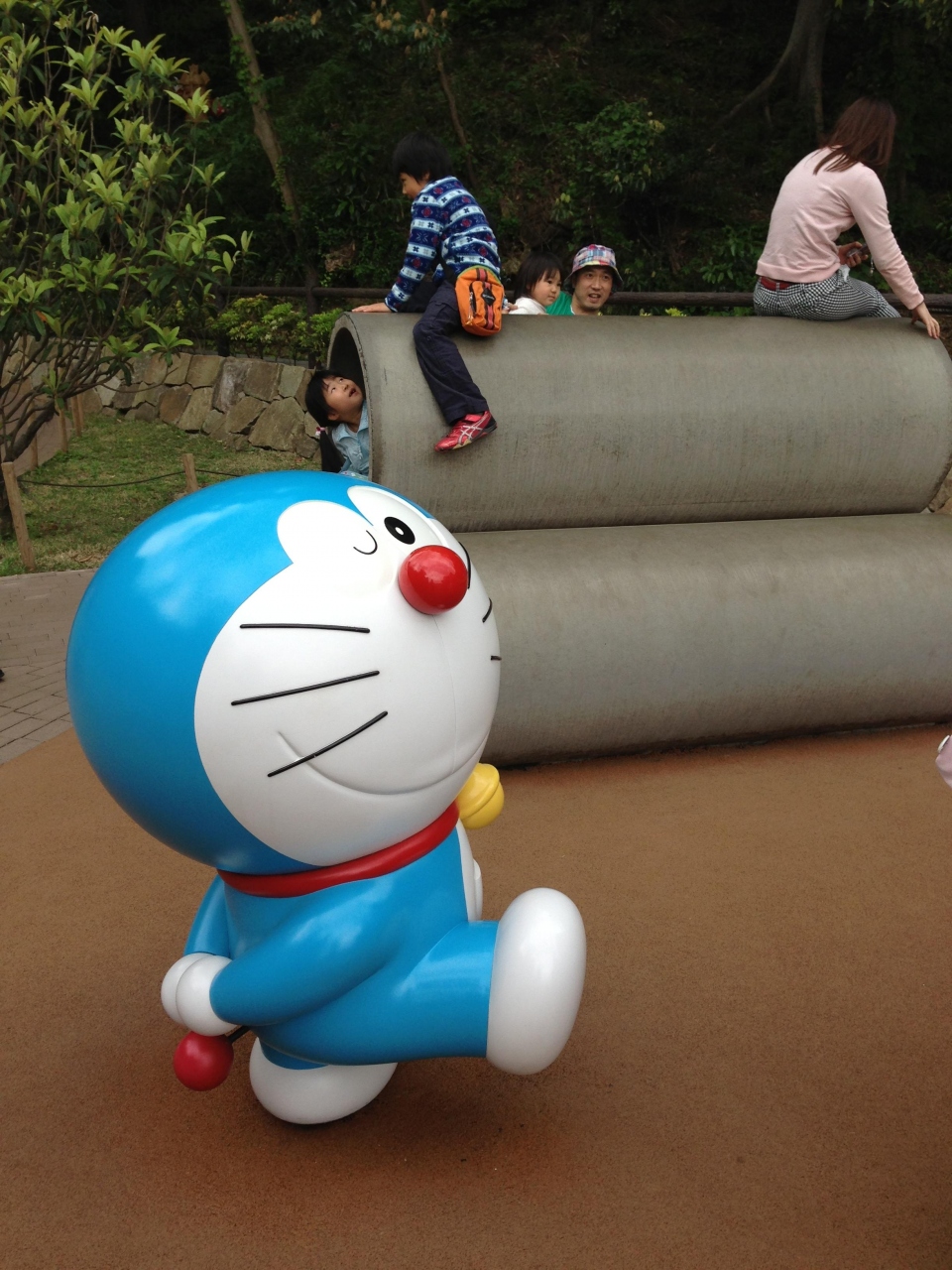 藤子F先生が書いた漫画の貴重な原画を眺めるだけでも十分ですが、いろんなところにいるキャラクターや屋上広場にあるどこでもドアなどのオブジェを見た瞬間子供にもどれます。
