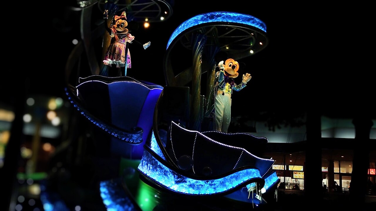 普段のエレクトリカルパレードより時間も短いしフロートも少ないですが、よく見るとキャラのお洋服が雨のしずく型のボタンだったりと雨をアピールしたパレードとなっているのでレアなパレードでもあります!
