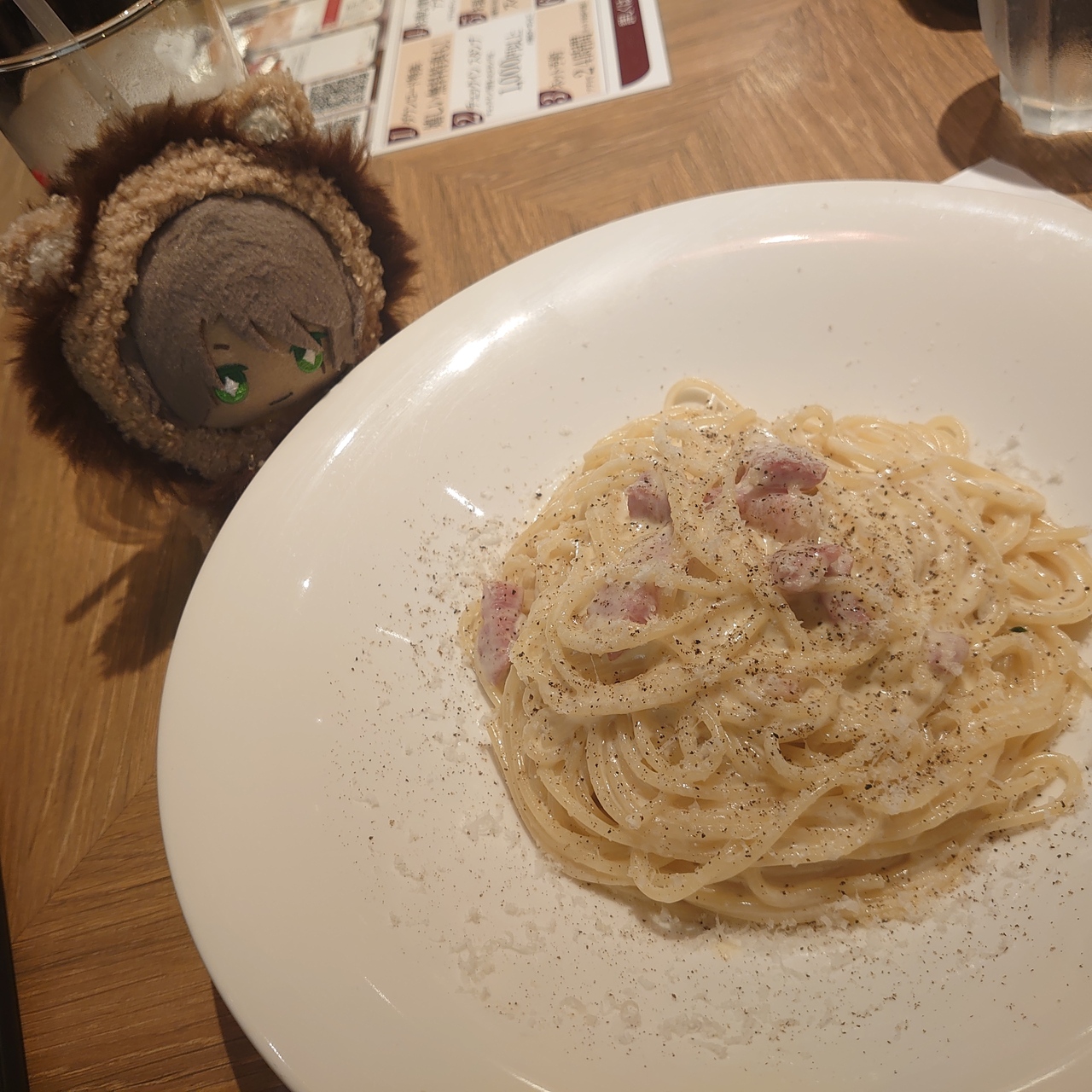 セットはセットメニューに書いてあるパスタ以外も選べると言われカルボナーラにしましたwww