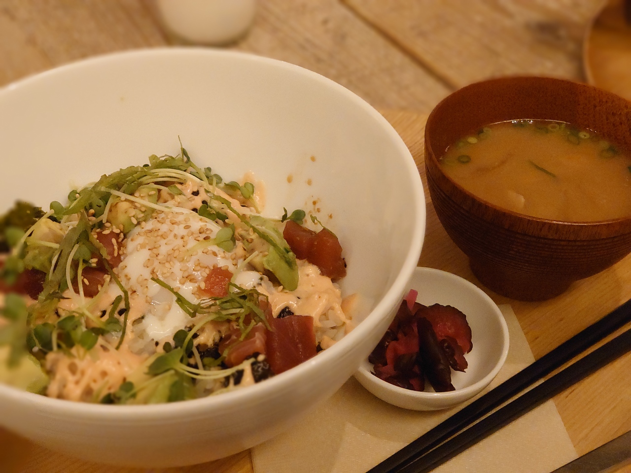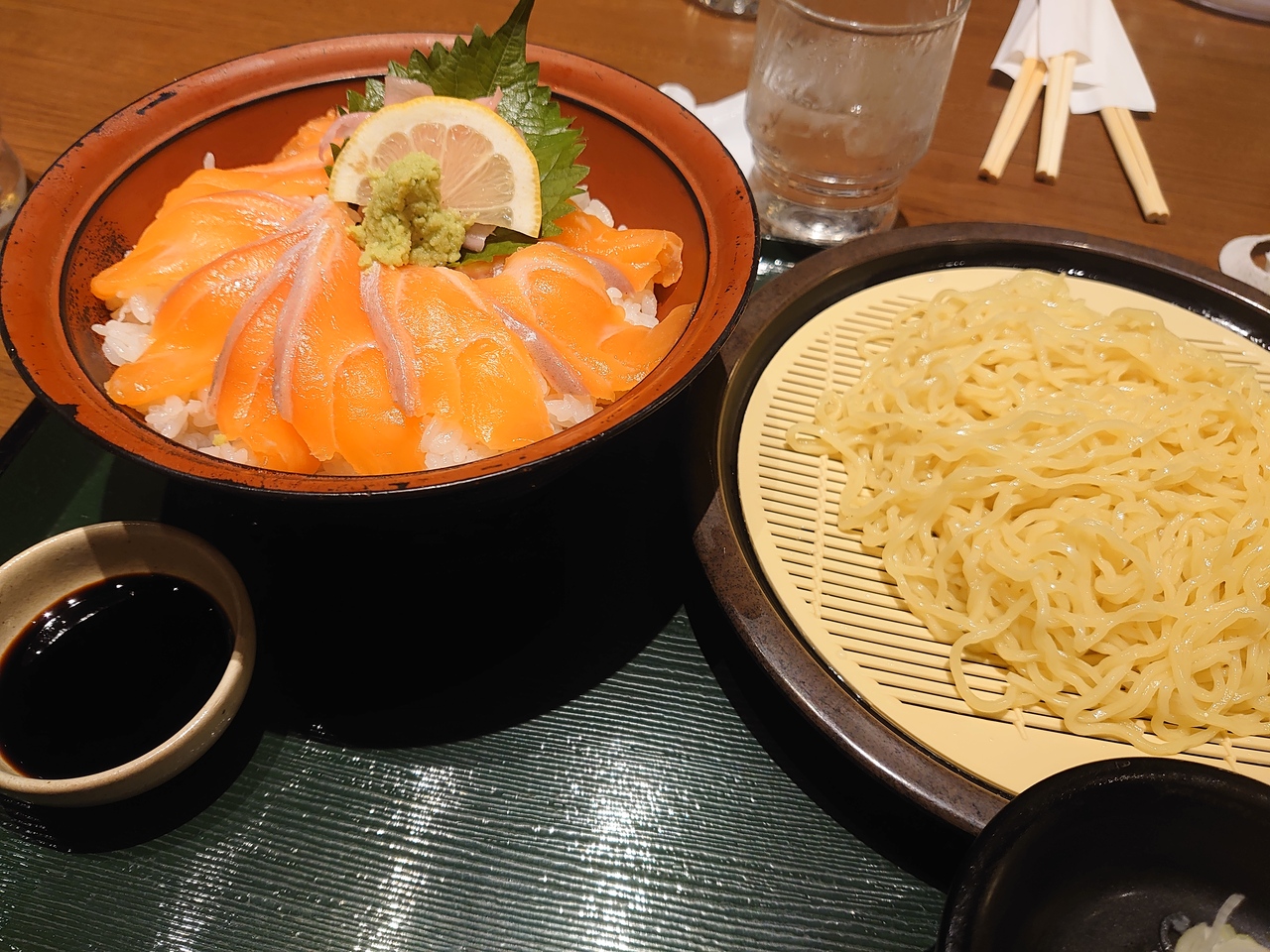 サーモン丼とミニざるラーメンのセットを注文
