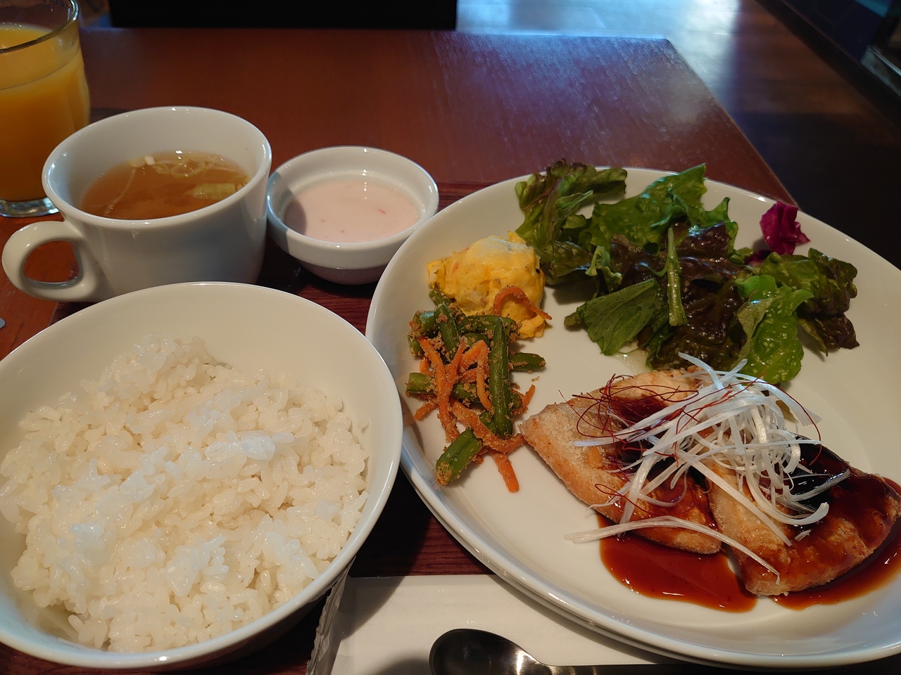 普段はサラダバーがありますが、コロナの影響で自分で取るタイプではなく、一皿食べ終わったら交換で新しいサラダを持ってくるサラダ食べ放題になったみたいです