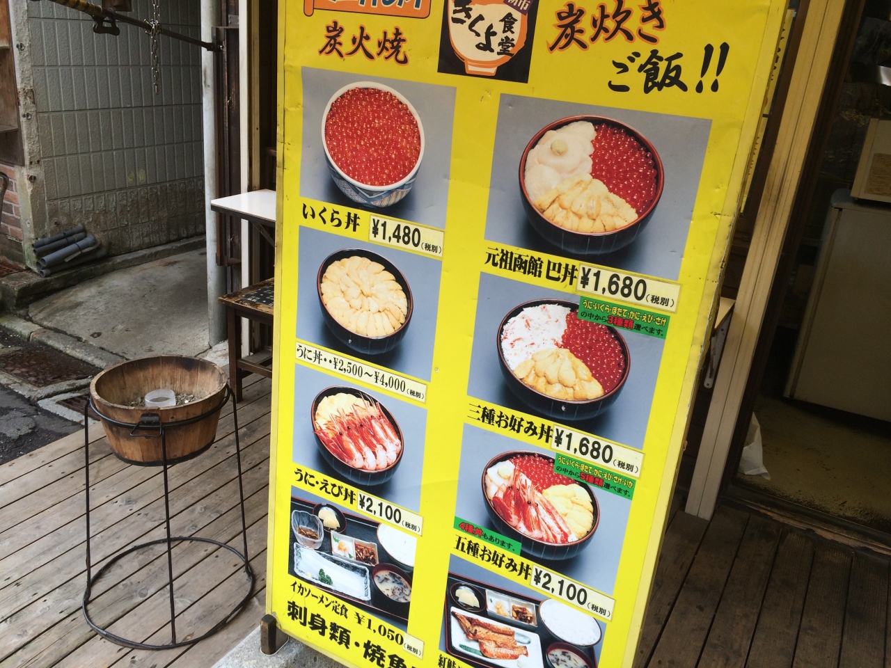 函館に到着すると、すぐに「きくや食堂」に向かいました。函館の市場内ど真ん中に立地しています。注文は当然「うにいくら丼」(2100円)です。ぷちぷちとした、いくらの食感と濃厚なうにの風味がばっちりです。コスパに関しては仕方ないですね。観光客価格という評価も頷けます。なお、息子は生ものがあまり好きではないので「ほっけ焼き」の定食を食べました。脂がのっておいしかったようで完食していました。5歳児にしてはかなり食べたなーという感じでした。
