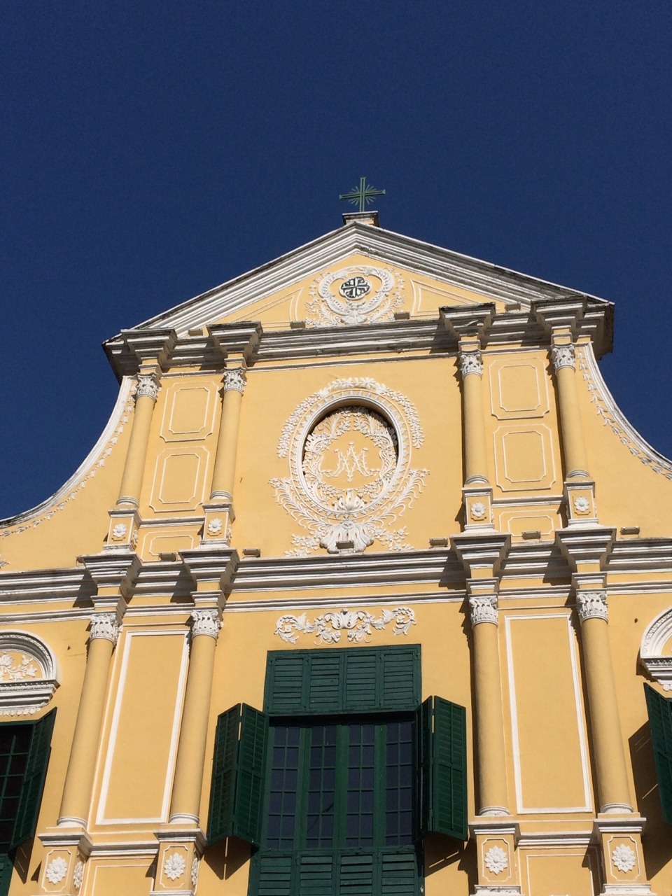 セナド広場を進んで行ってお土産やさんが軒を連ねる坂道をぬけると突然景色が開けて、ガイドブックでお馴染みの風景が。青空にそびえるファサードが美しい。階段を昇りきって奥へ進むと、納骨堂があり、見学できます。